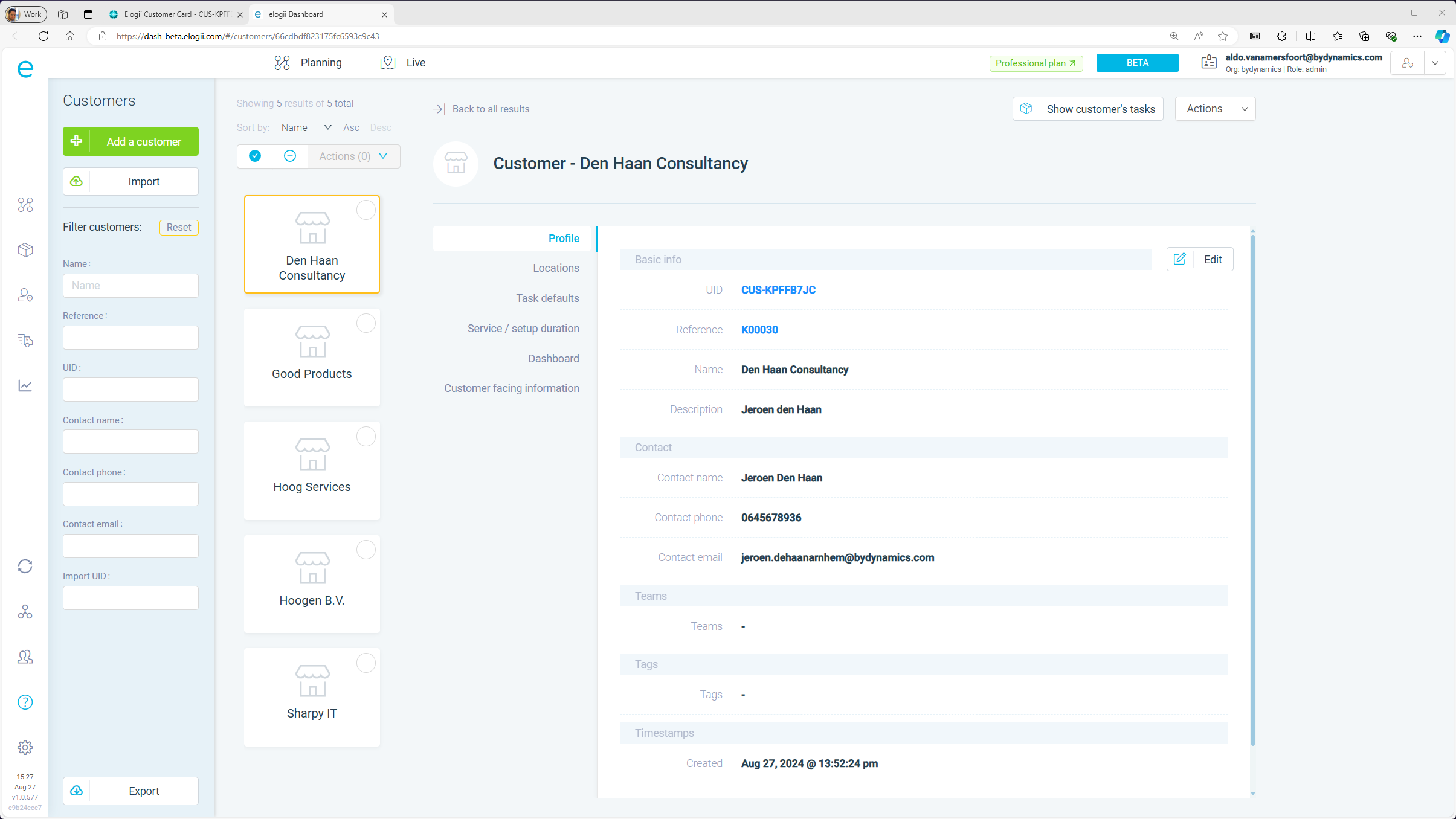 Add your Business Central customers and Ship-To-Addresses to Elogii customers and location.