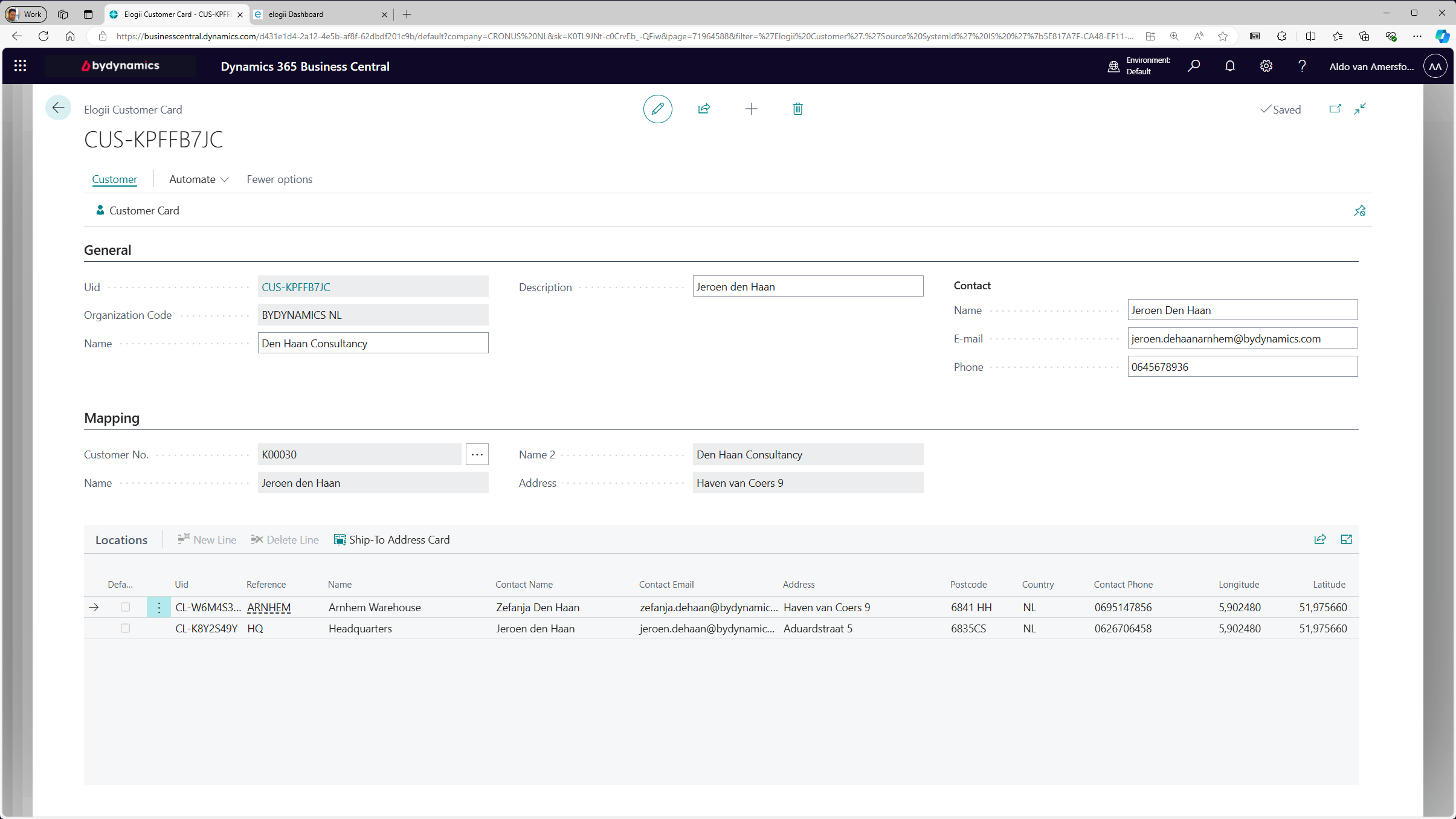 - Possibility to map existing Elogii customers to existing Business Central customers