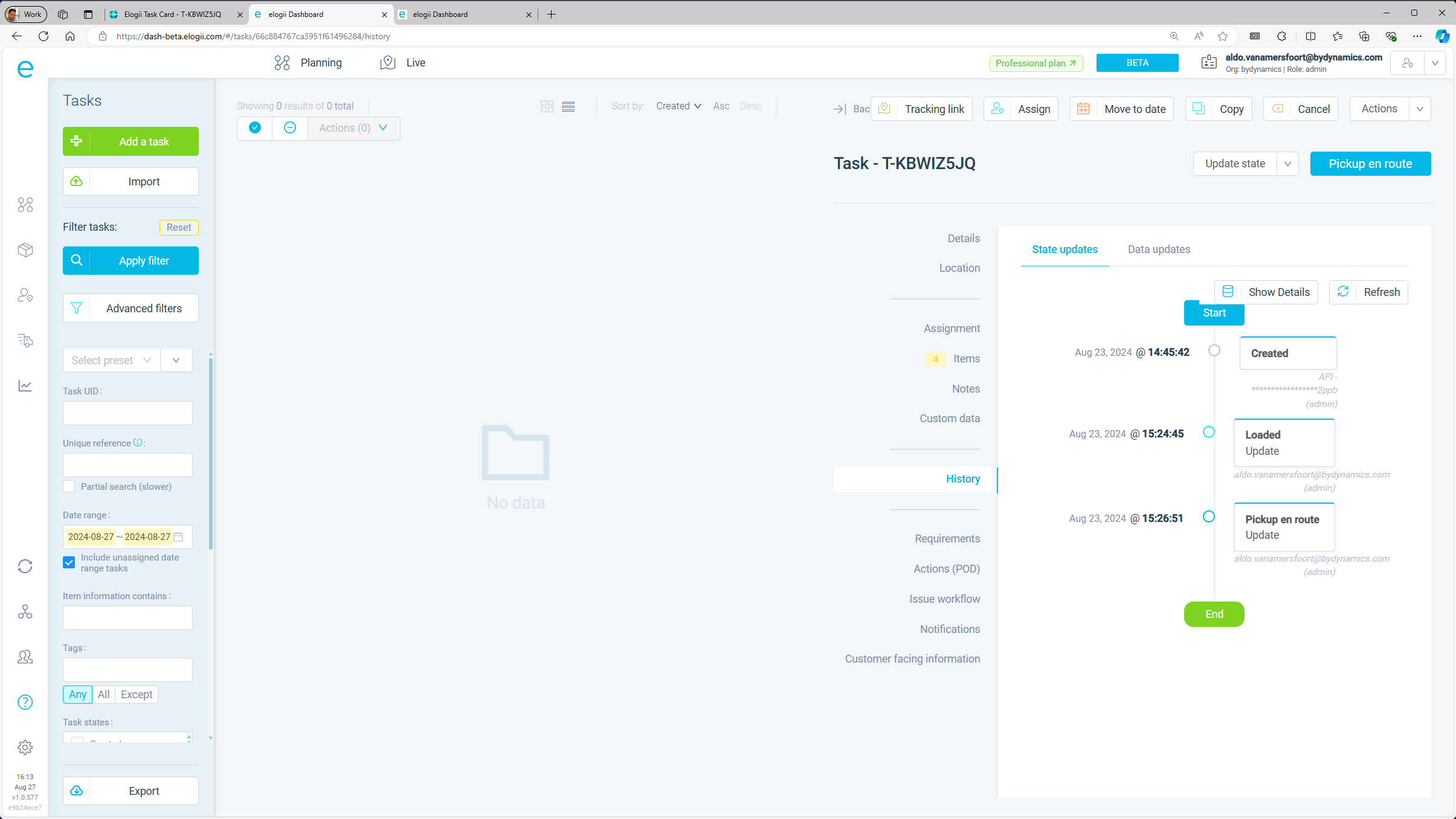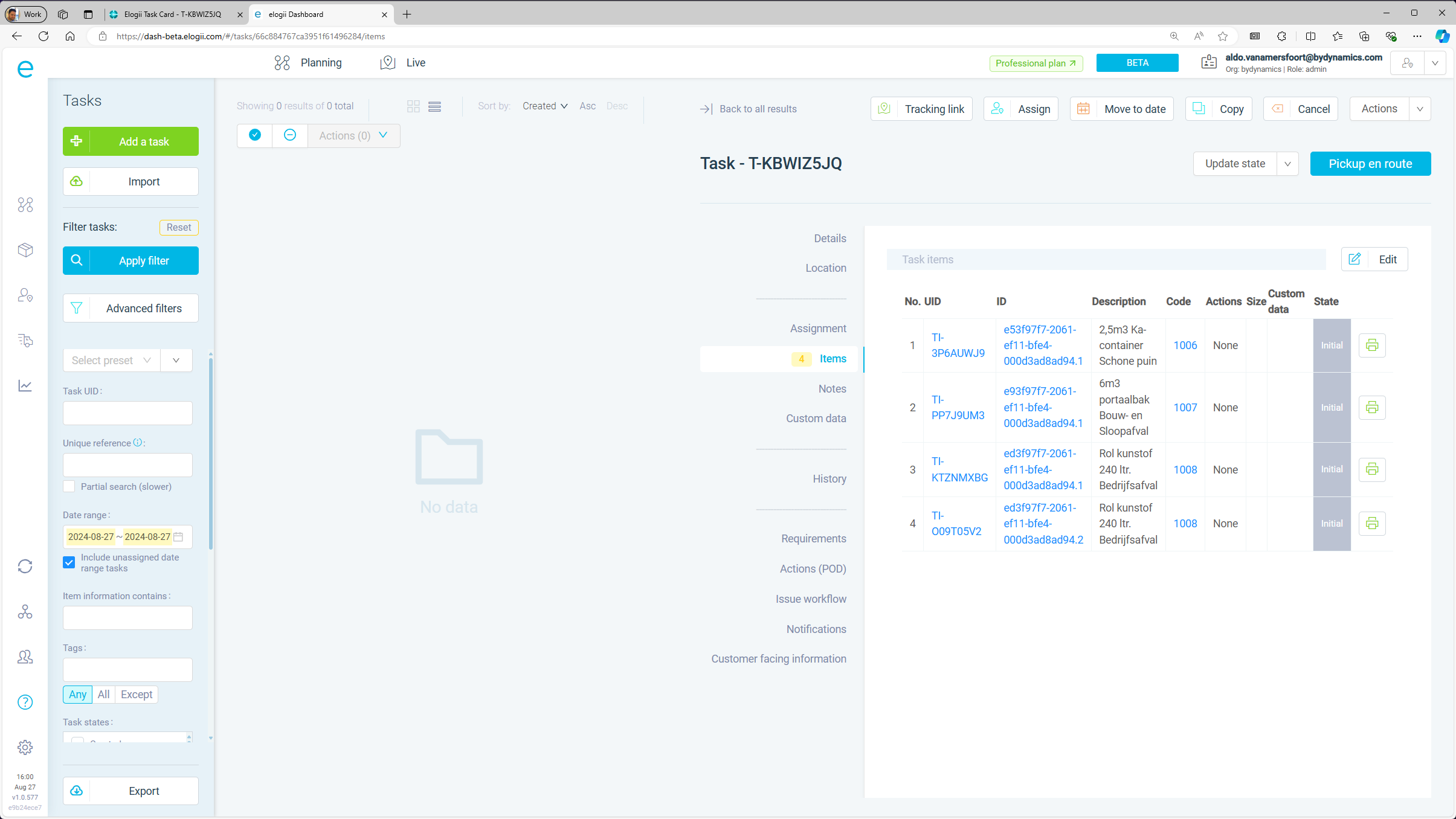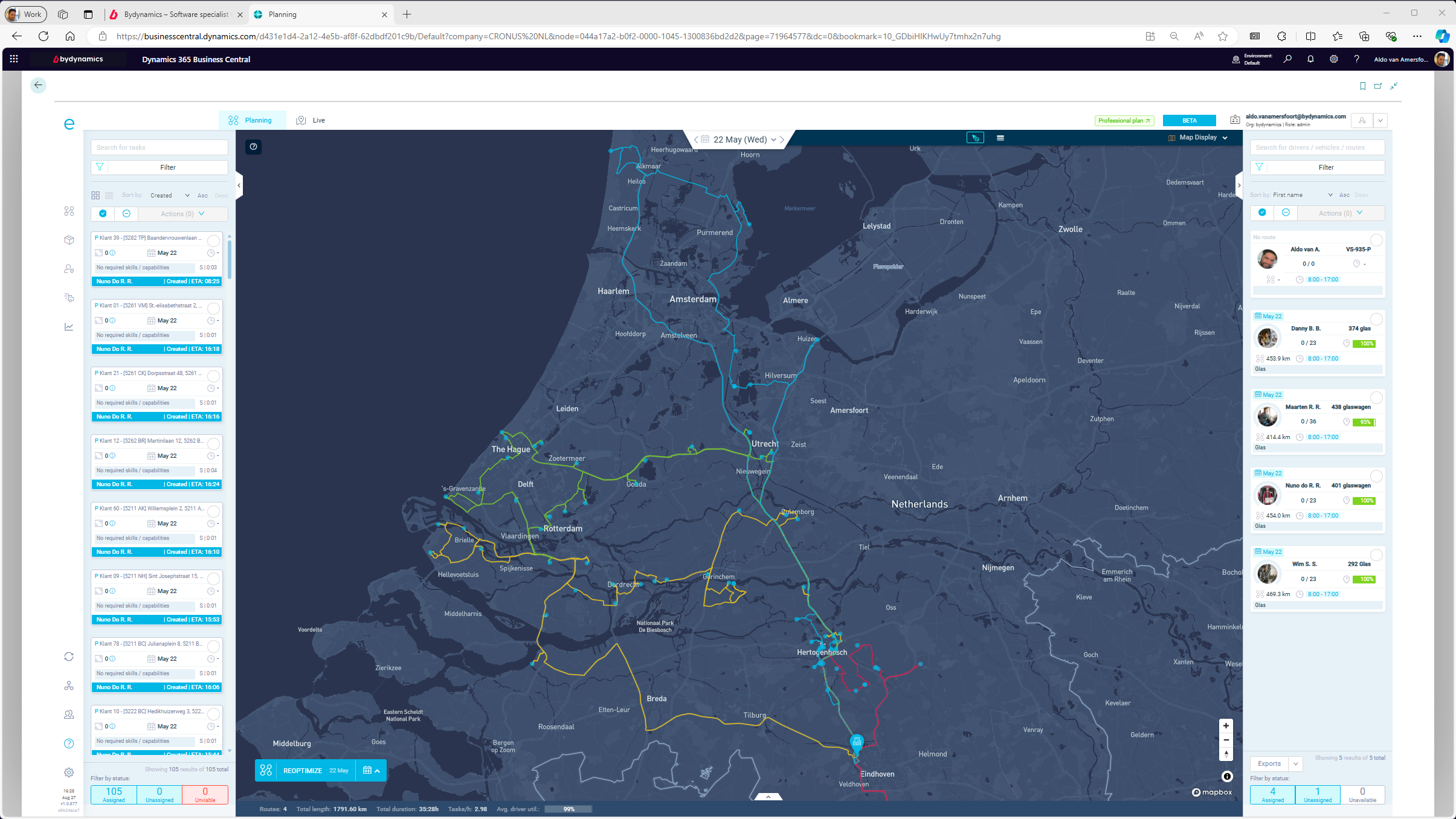 Business Central Elogii tasks will be send to Elogii automatically where they will be assigned a truck and driver. This assignment will create a route.